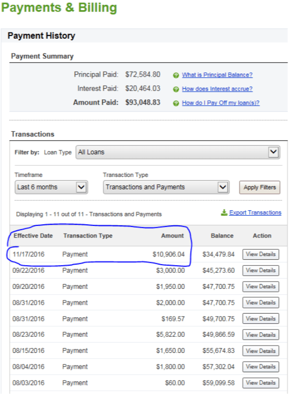 This was my original student loan balance of $100K plus $14K in interest. I was buried in debt!